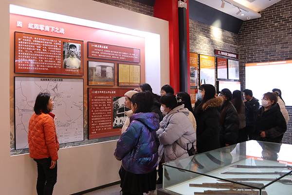 2月18日,老师们来到英山县白羊山村红四军鸡鸣河会议纪念园,集体瞻仰红四军革命烈士纪念碑,参观中国工农红军第四军历史陈列展。1931年9月4日,红四军移驻鸡鸣河,由军长徐向前、政委曾中生主持召开了全军连长指导员以上的积极分子会议,一致通过申明书,提出了在英、士斤、黄、广开展革命工作的正确主张。鸡鸣河会议坚持了从实际出发的战略方针,是红四军军史上一次重要的会议。