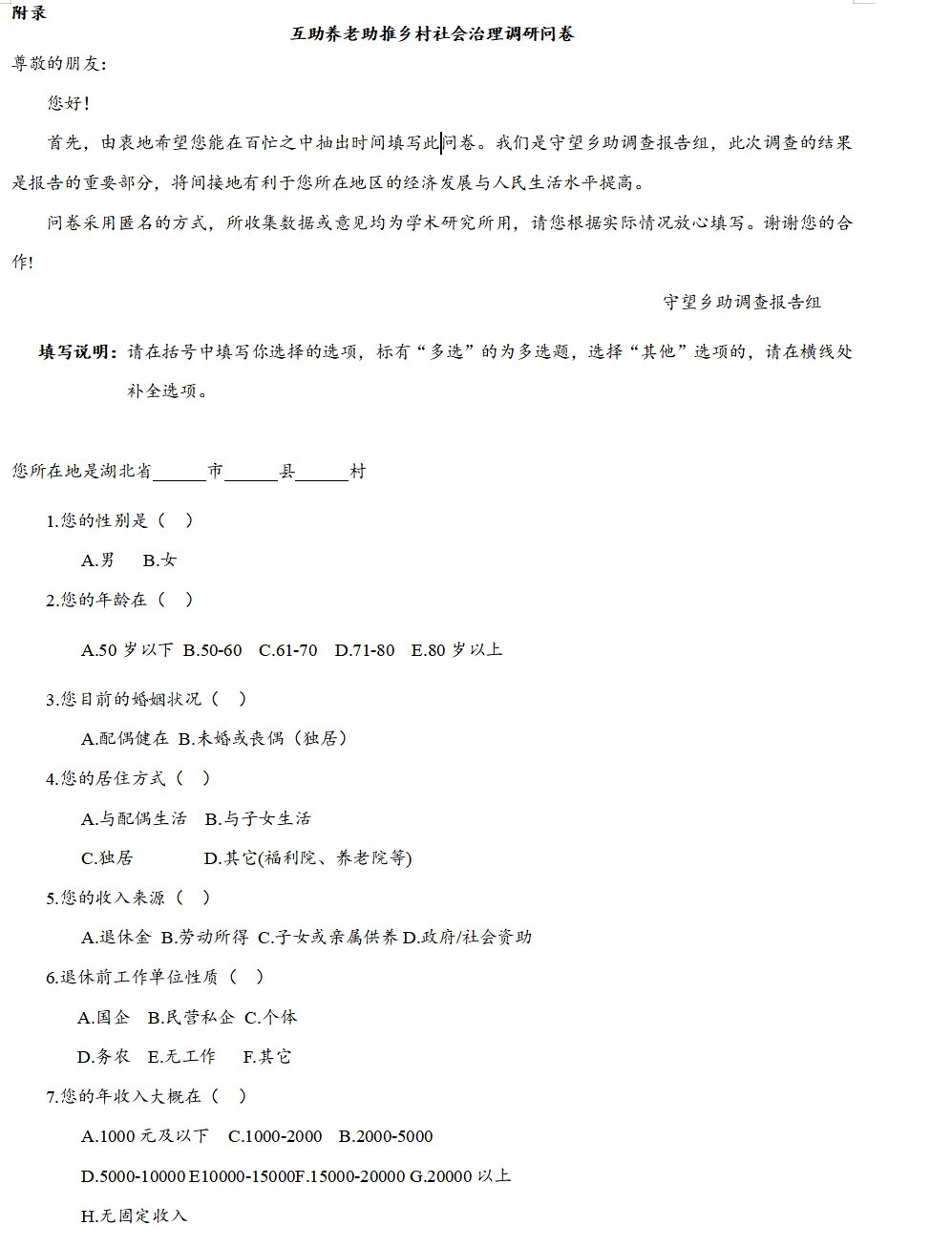 开展“互助养老”问卷调研。