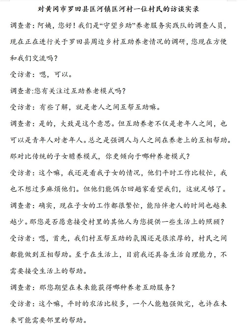 图11对匡河镇匡河村一位村民的访谈实录。