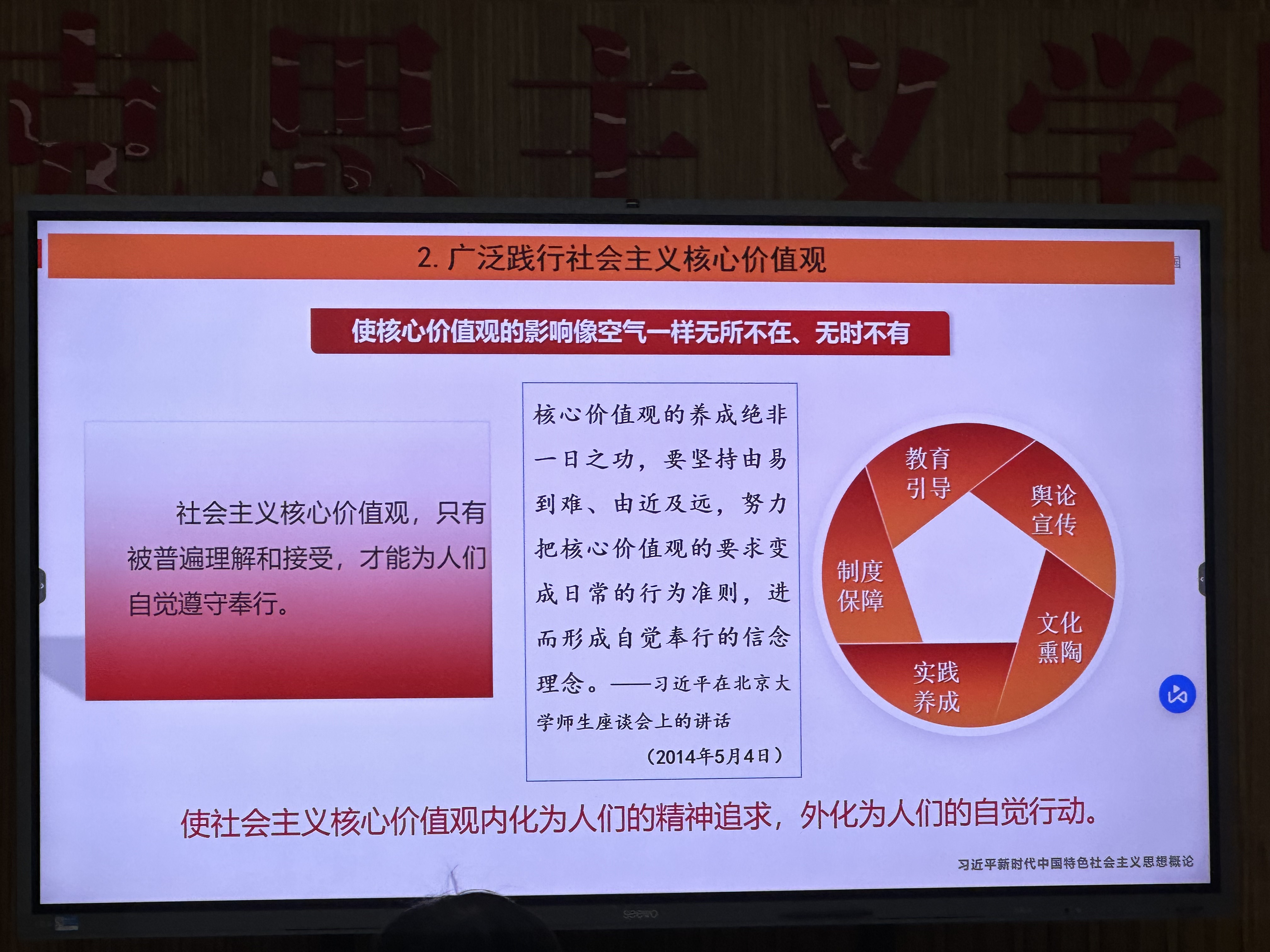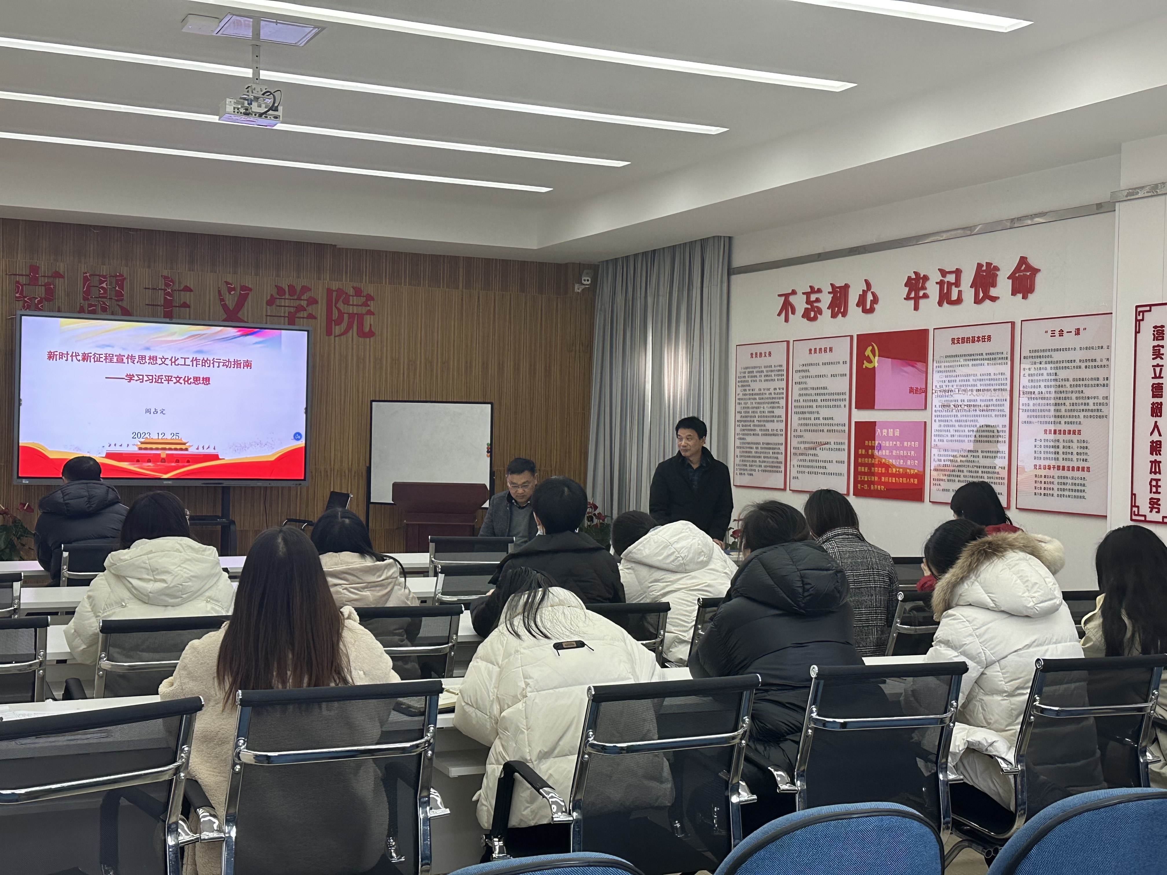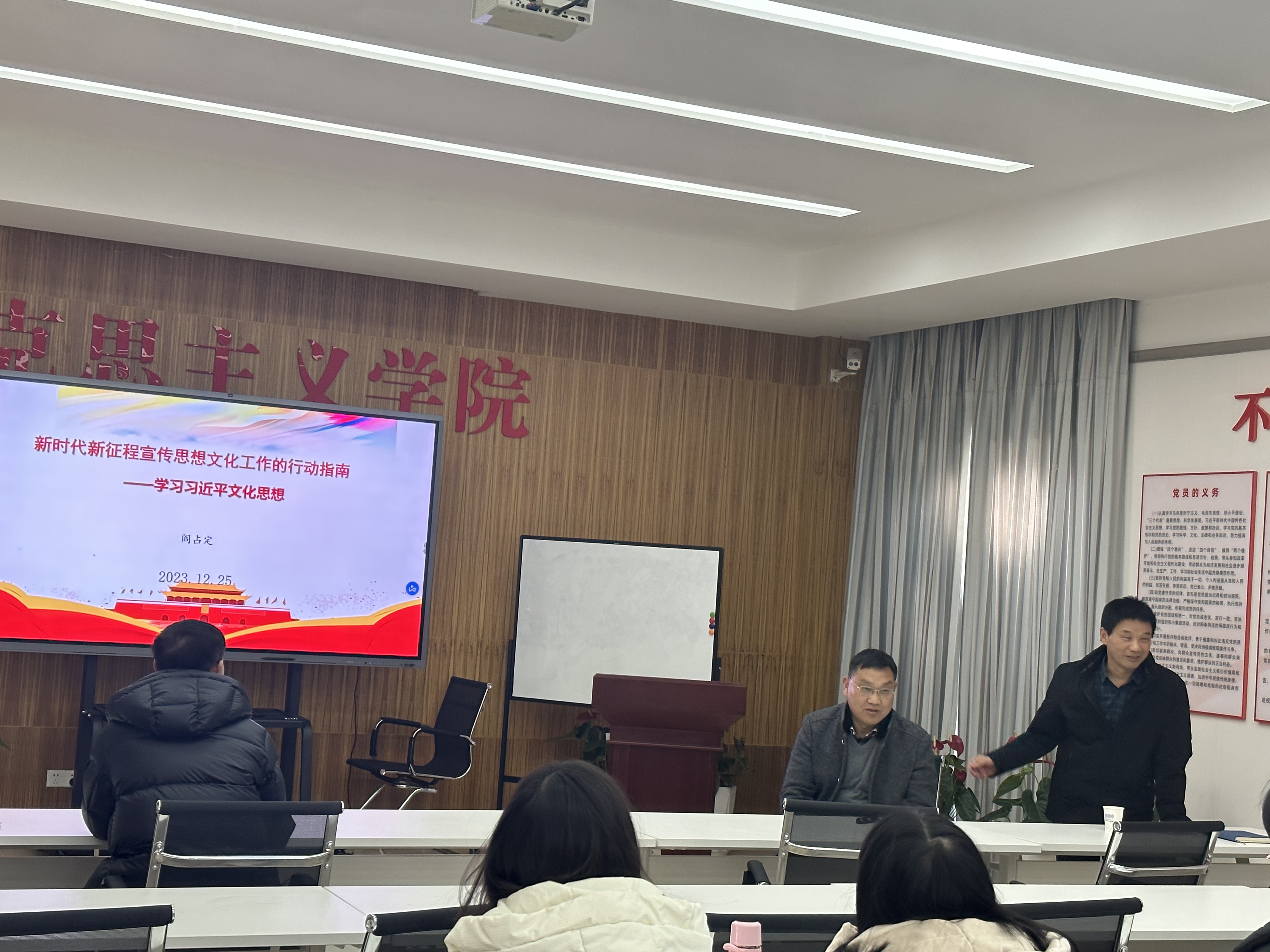 会上,阎占定教授从以下三个方面进行分享交流:第一,讲述了习近平文化思想的形成发展过程。简单介绍了习近平文化思想的背景、形成过程和理论创新,明确深入领会新时代党的宣传思想文化事业取得的历史性成就,深刻把握习近平总书记在新时代文化建设方面的新思想新观点新论断。第二,介绍了习近平文化思想的丰富内容。阐述了文化建设的重要性,要不断提高国家文化软实力和中华文化影响力;强调坚持和加强党对宣传思想文化工作的领导、坚持马克思主义在意识形态领域指导地位根本制度,明确意识形态工作是党的一项极端重要的工作。第三,阐述了习近平文化思想的重大意义。强调习近平文化思想是实践总结、理论结晶,彰显了明体达用、体用贯通的价值导向功能,更是实现中华民族伟大复兴的重要思想武器、行动指南。