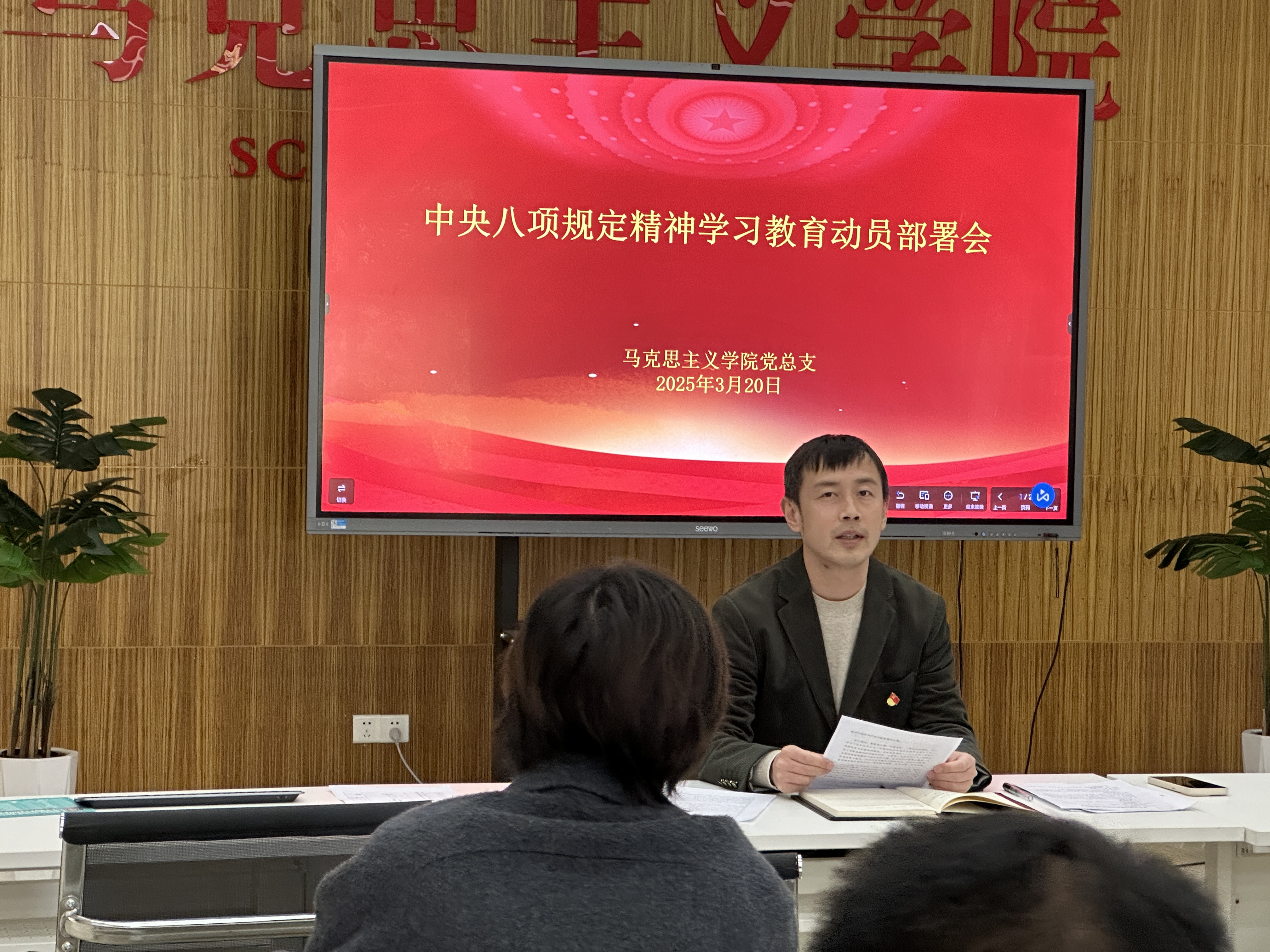 会议伊始,公司党总支书记柯峰首先领学了《中共中央办公厅关于在全党开展深入贯彻中央八项规定精神学习教育的通知》和“中央党的建设工作领导小组有关会议精神。他系统解读了《通知》中的各项要求,强调要提高政治站位,深刻认识贯彻中央八项规定精神的重要性。明确开展此次学习教育,是持续深化党的创新理论武装的必然要求,是巩固深化党纪学习教育成果的重要举措。要求全院教职工以此次学习为契机,坚持问题导向,从严从实查摆整改突出问题,严守纪律规矩,加强自我约束,坚决抵制“四风”,加强作风建设,进一步筑牢思想防线,严守政治纪律和政治规矩。