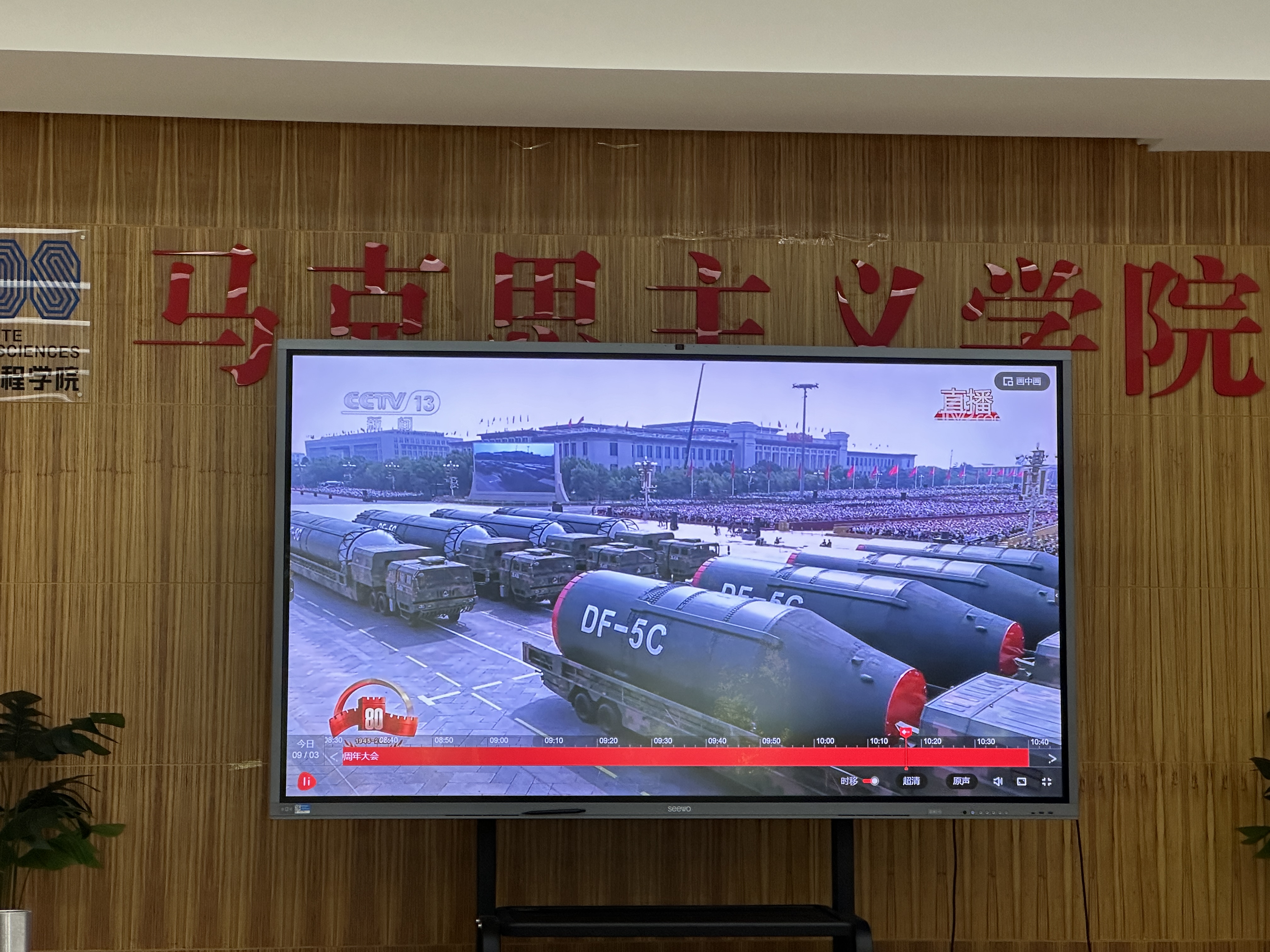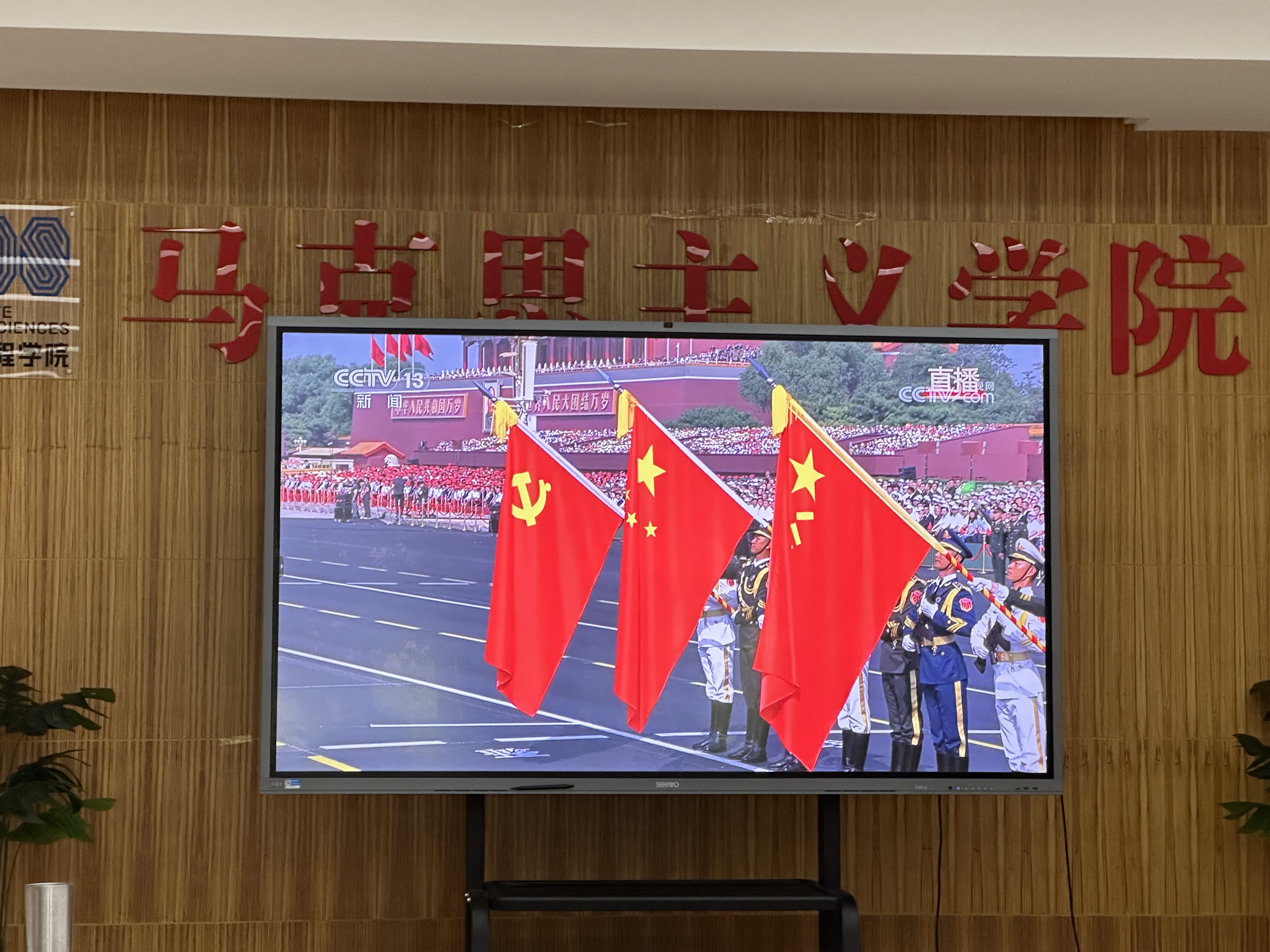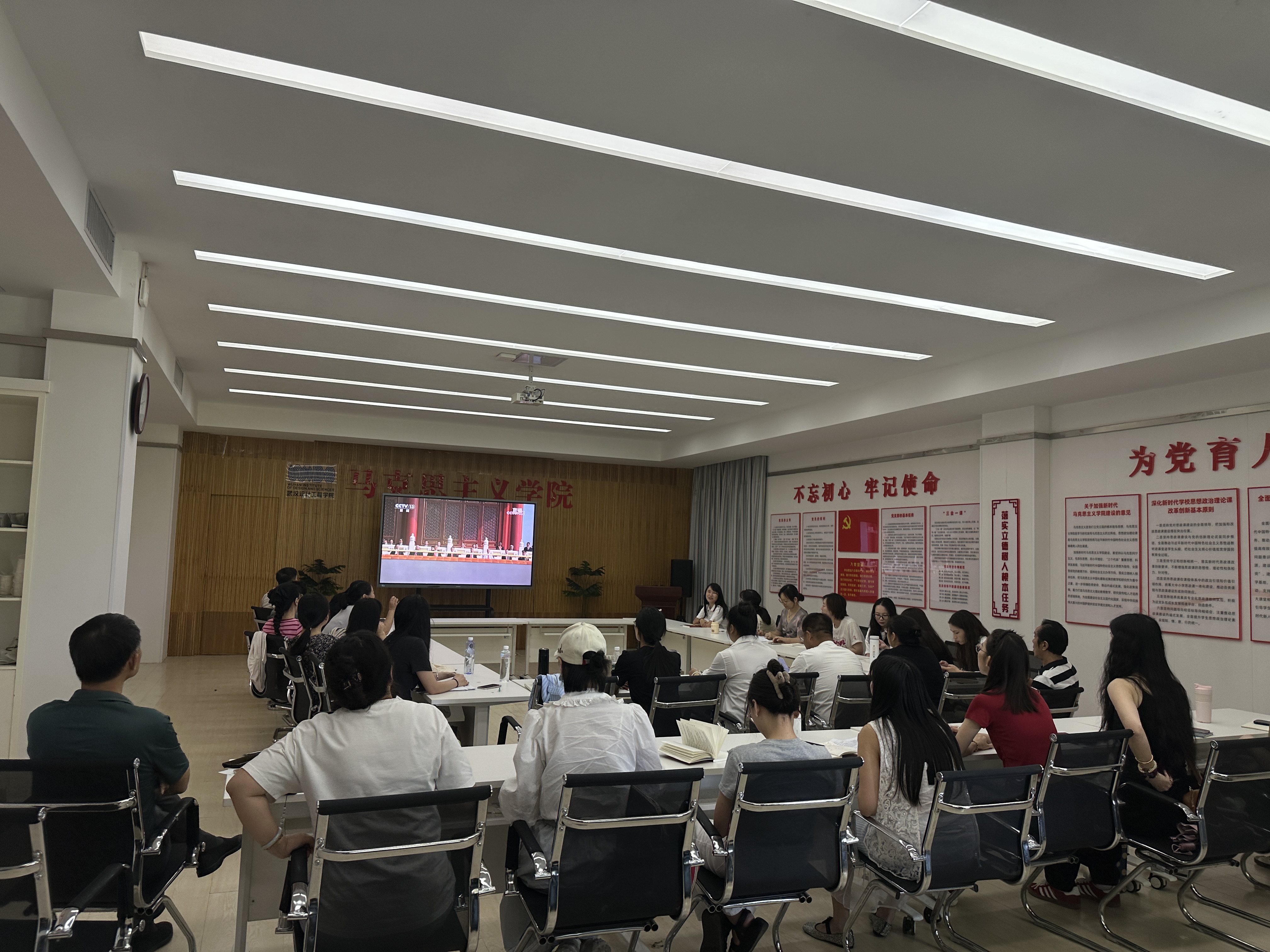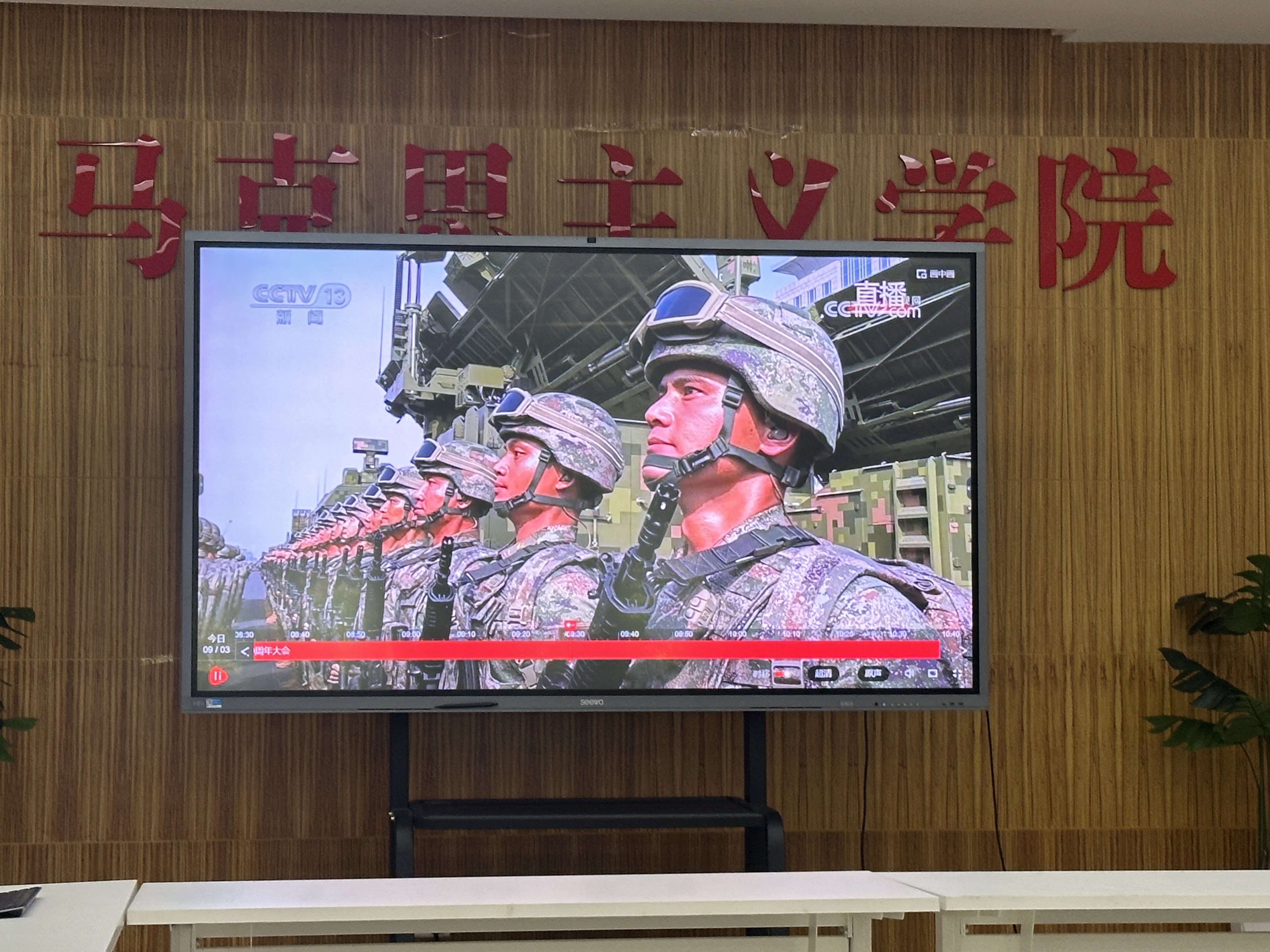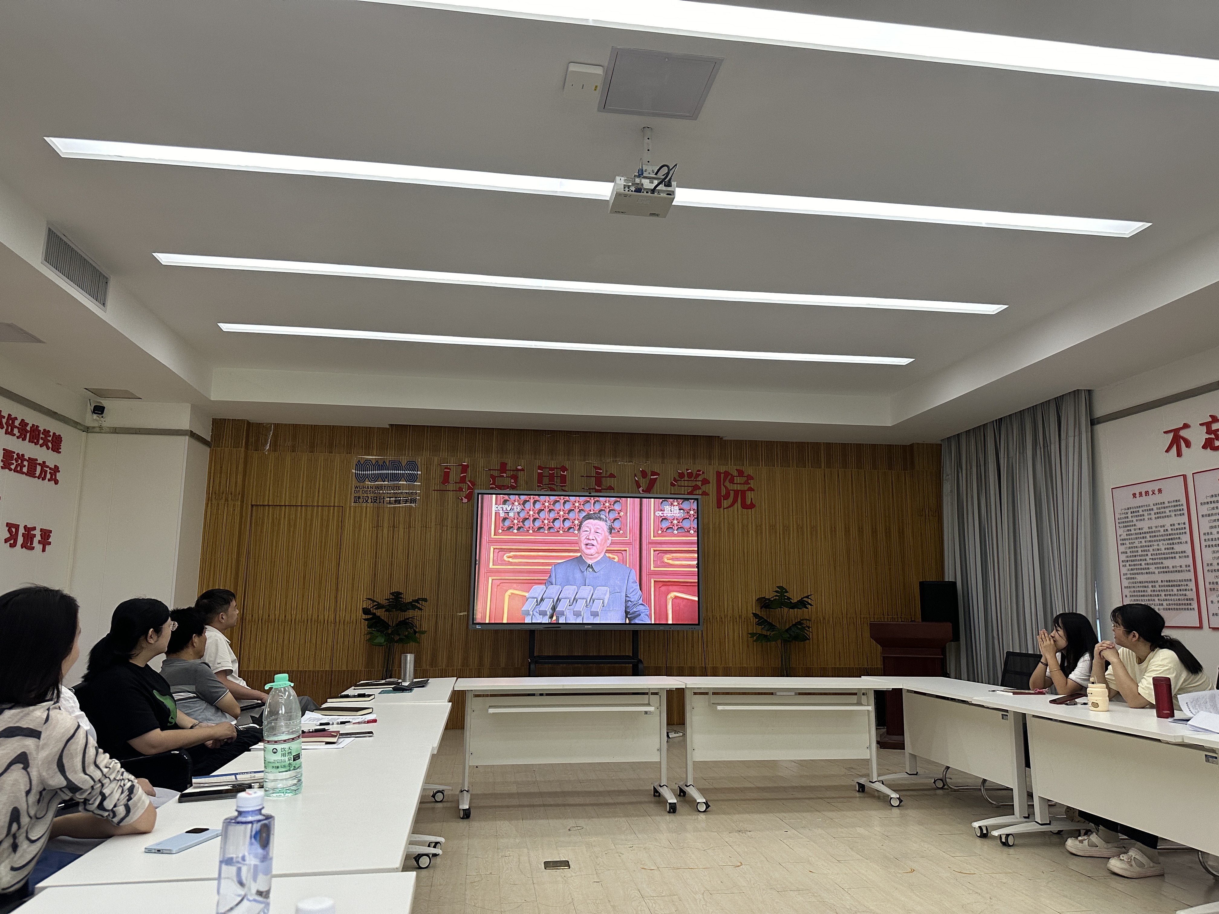 yl23455永利组织全院教师集中观看抗战胜利80周年阅兵活动。