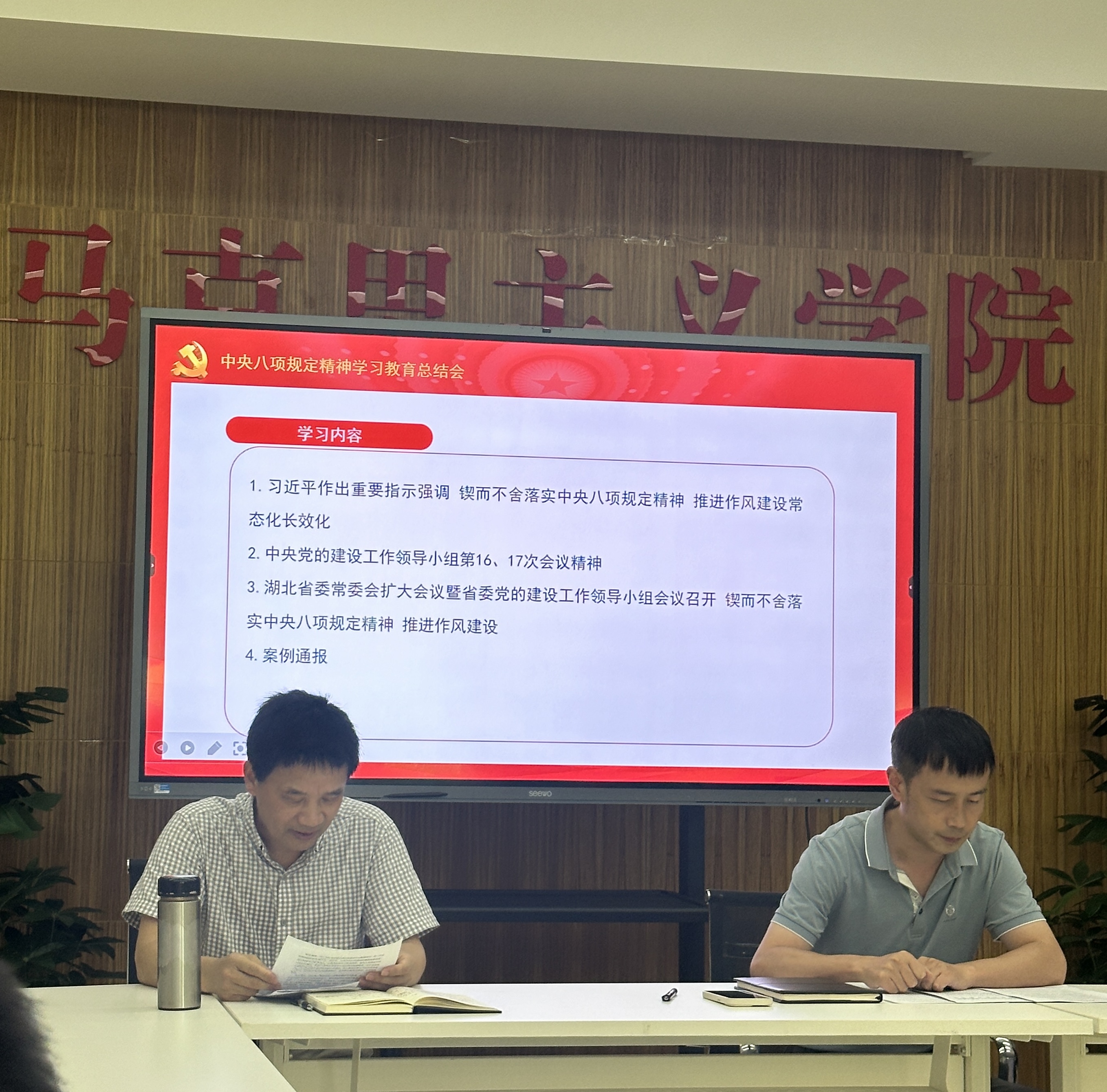 随后,副经理郭永爱领学了《湖北省常委会扩大会议暨省委党的建设工作领导小组会议召开 锲而不舍落实中央八项规定精神 推进作风建设》。郭经理详细传达了湖北省会议精神,要求全体教师以更高的政治站位、更严的标准要求,持续深化作风建设,确保中央八项规定精神在公司各项工作中落地生根。