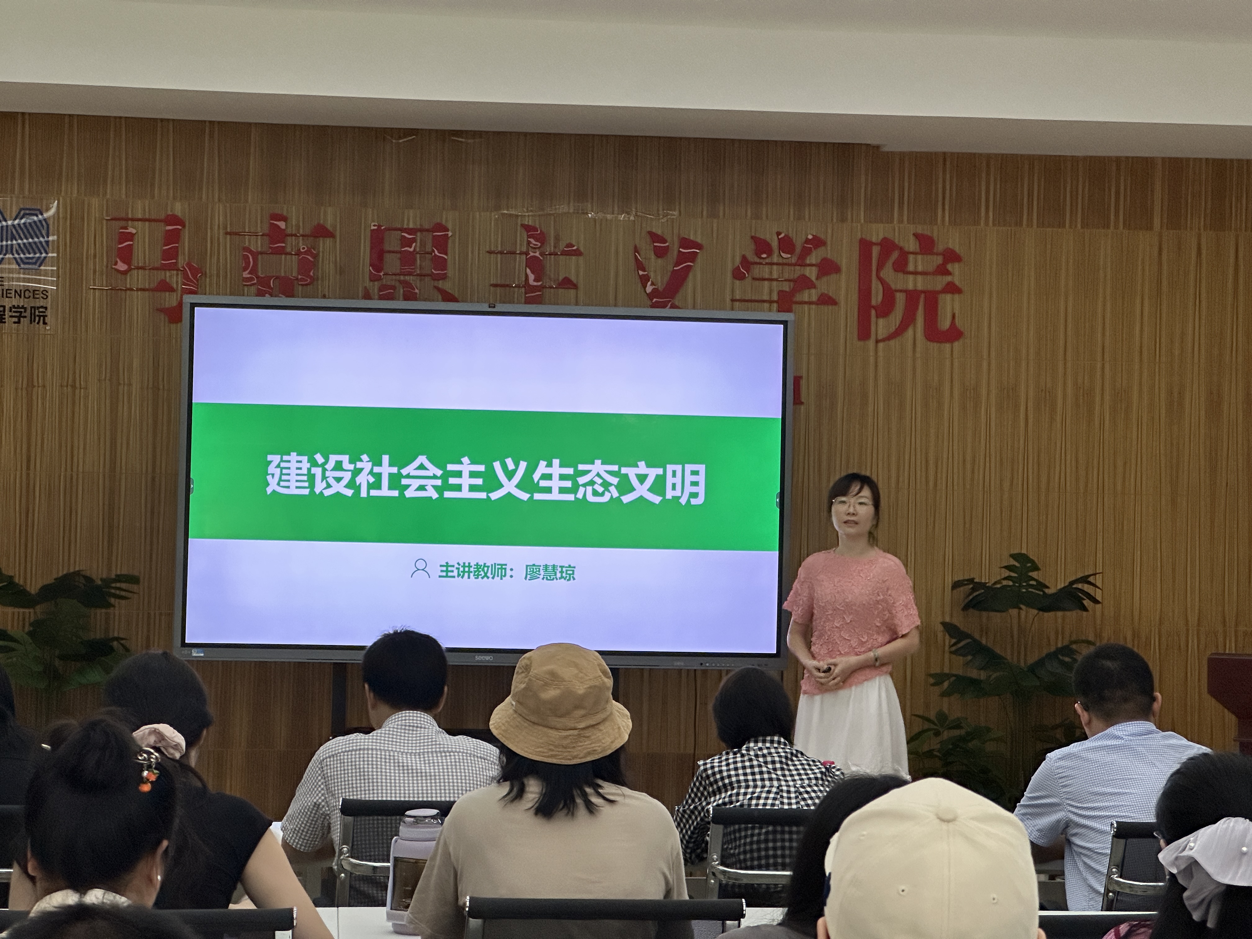 此次集体备课会聚焦《习近平新时代中国特色社会主义思想概论》课程。备课会上,该课程授课教师廖慧琼围绕“建设社会主义生态文明”这一主题,进行备课说课展示。她从教学分析、教学策略、教学过程及教学反思四个维度,系统梳理了课程设计的理论依据与实践路径,生动阐释习近平生态文明思想的科学内涵与时代价值。同时结合生动的案例和最新的政策动态,介绍了如何面向不同专业的员工,开展分众化教学的举措。与会教师围绕廖慧琼老师的说课设计展开了热烈的交流与讨论。
