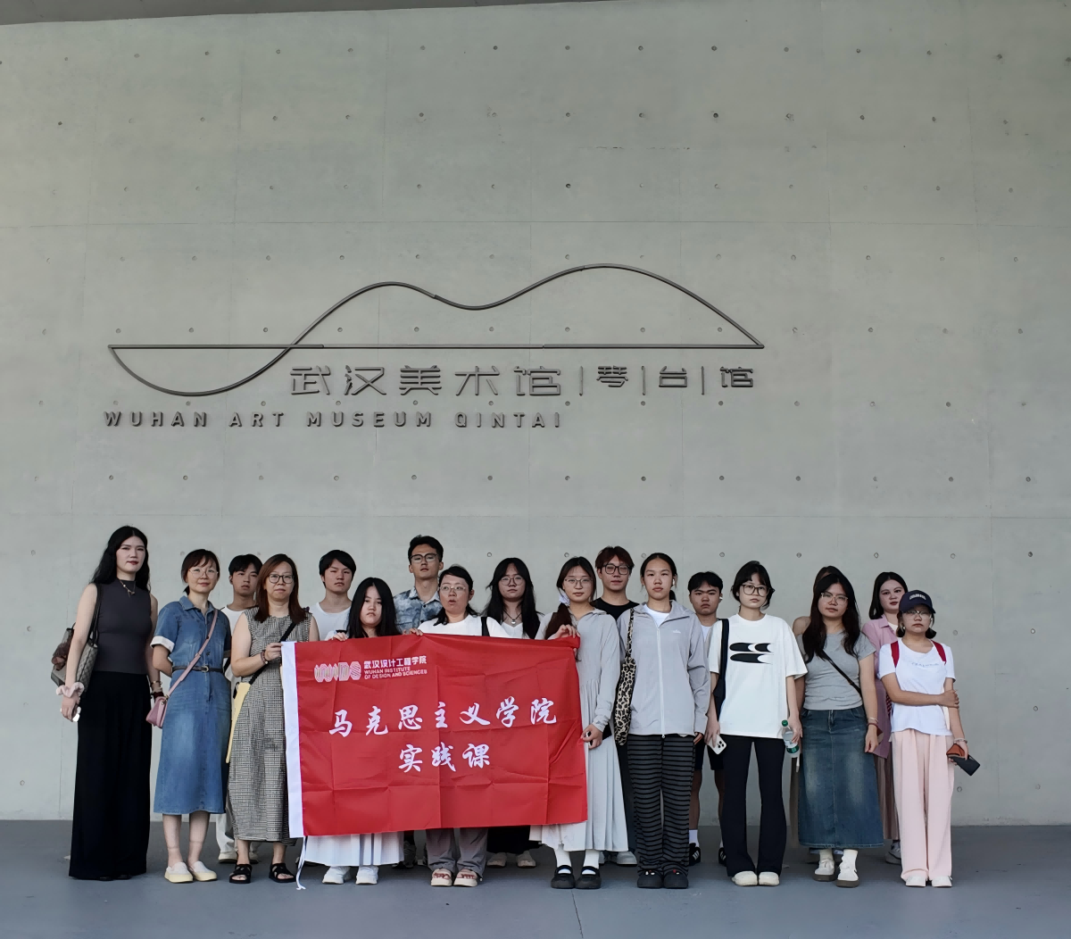 本网讯(通讯员 郭瑾)9月16日,yl23455永利习近平新时代中国特色社会主义思想概论教研室的徐林林、廖慧琼、刘甜、郭瑾四位教师,与环境设计公司专业教师金田野,一同带领环境设计专业员工前往武汉美术馆(琴台馆),开展了一场沉浸式课外实践教学活动。本次活动旨在引导员工在社会大课堂中深刻体悟新思想的精髓要义与实践伟力,坚定“四个自信”,自觉肩负起新时代赋予青年学子的文化使命与专业担当。